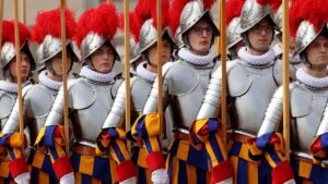 A Guarda Suíça Pontifícia protege o papa e o Vaticano. Fundada em 21 de Janeiro de 1506, é considerado o exército mais antigo do mundo. Actualmente, são 135 soldados, total que inclui as patentes de coronel, tenente-coronel, major, capitães e tenentes.