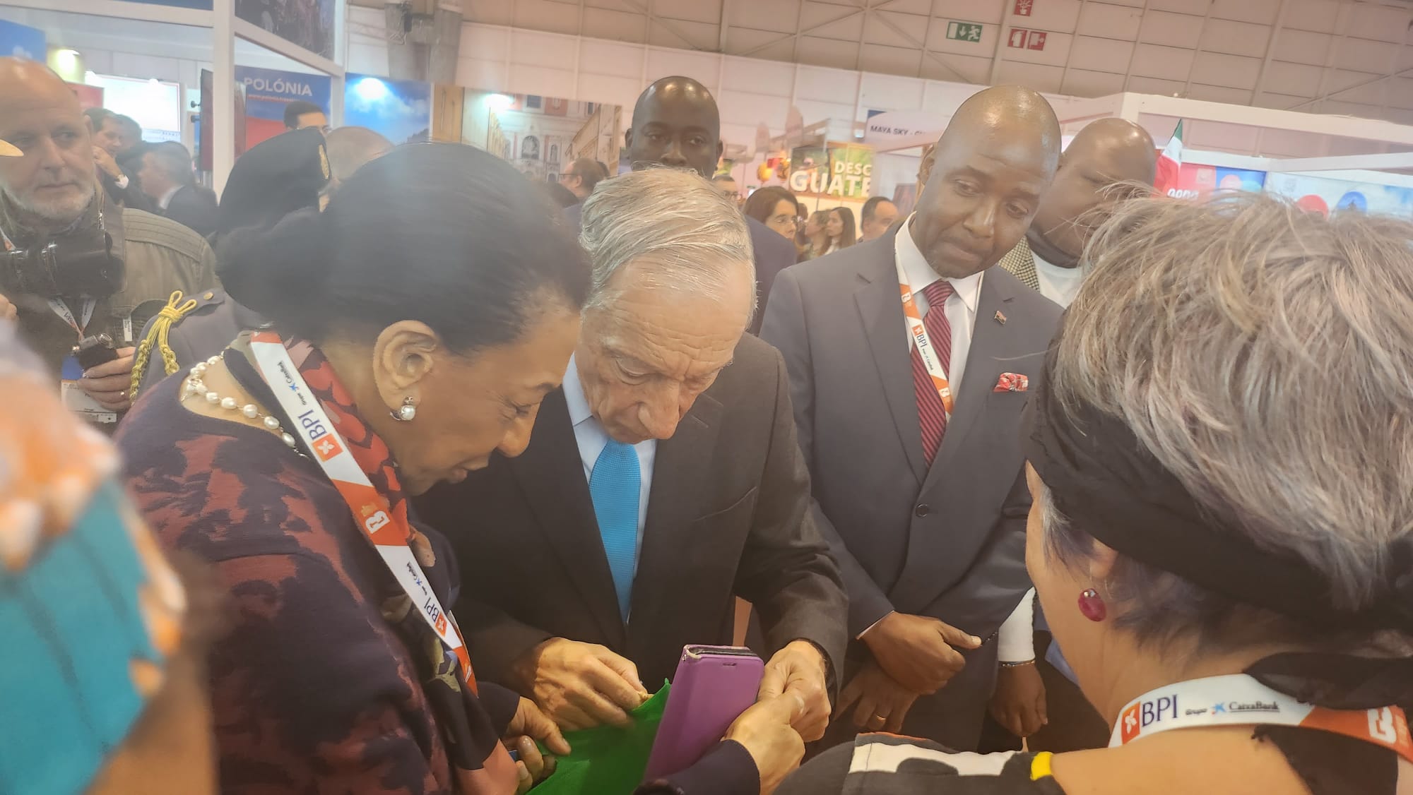 Acompanhado pela Embaixadora Extraordinária e Plenipotenciária da República de Angola na República Portuguesa, Maria de Jesus Ferreira, o director-geral do Infotur, Afonso Vita, forneceu ao Presidente português informações sobre o turismo em Angola, tendo este aproveitado para degustar alguns dos quitutes oferecidos aos visitantes.